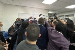 这阵势!巴特勒采访现场被围得水泄不通